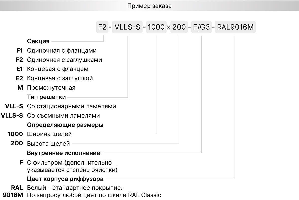 • решетки со съемным полотном VLLS-S могут комплектоваться фильтром по запросу;