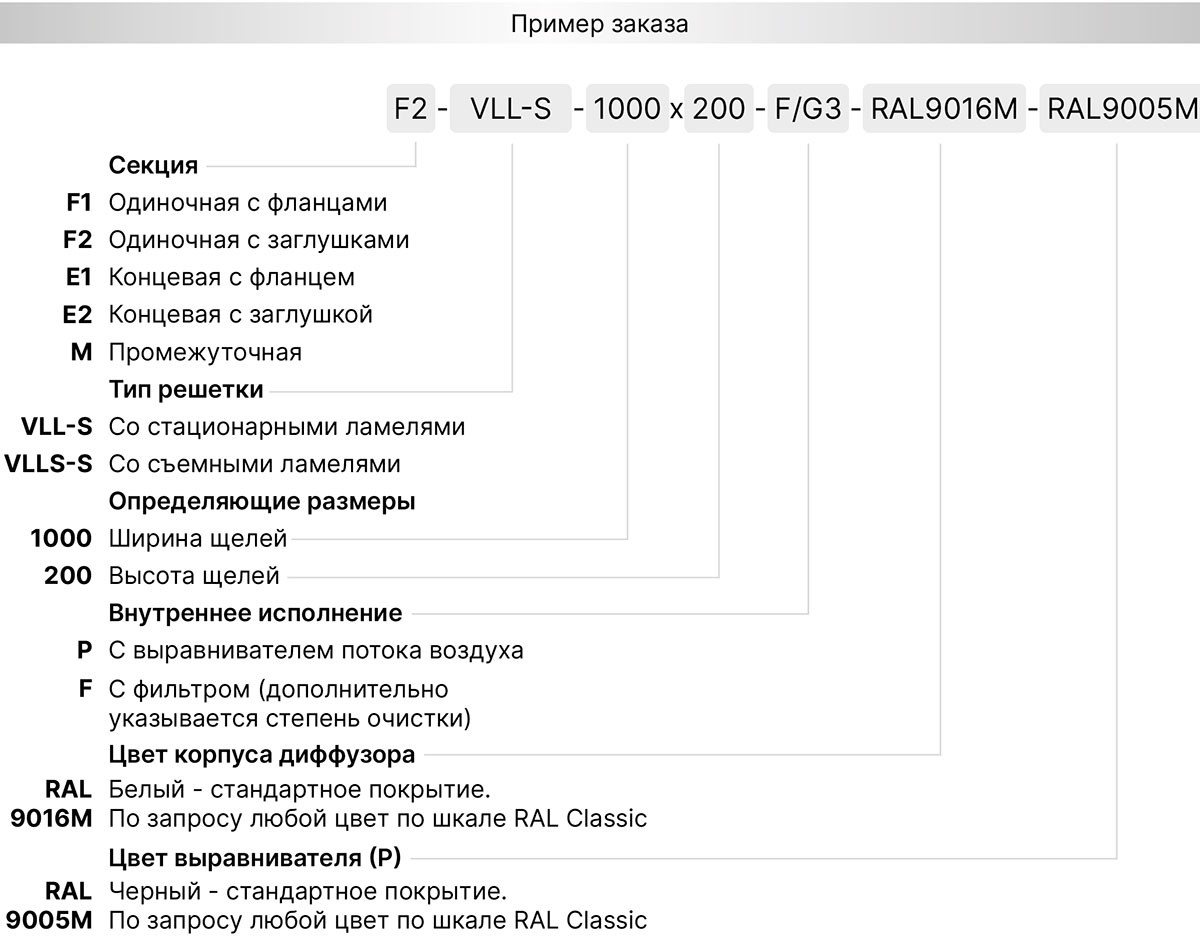 • решетки со съемным полотном VLLS-S могут комплектоваться фильтром по запросу;